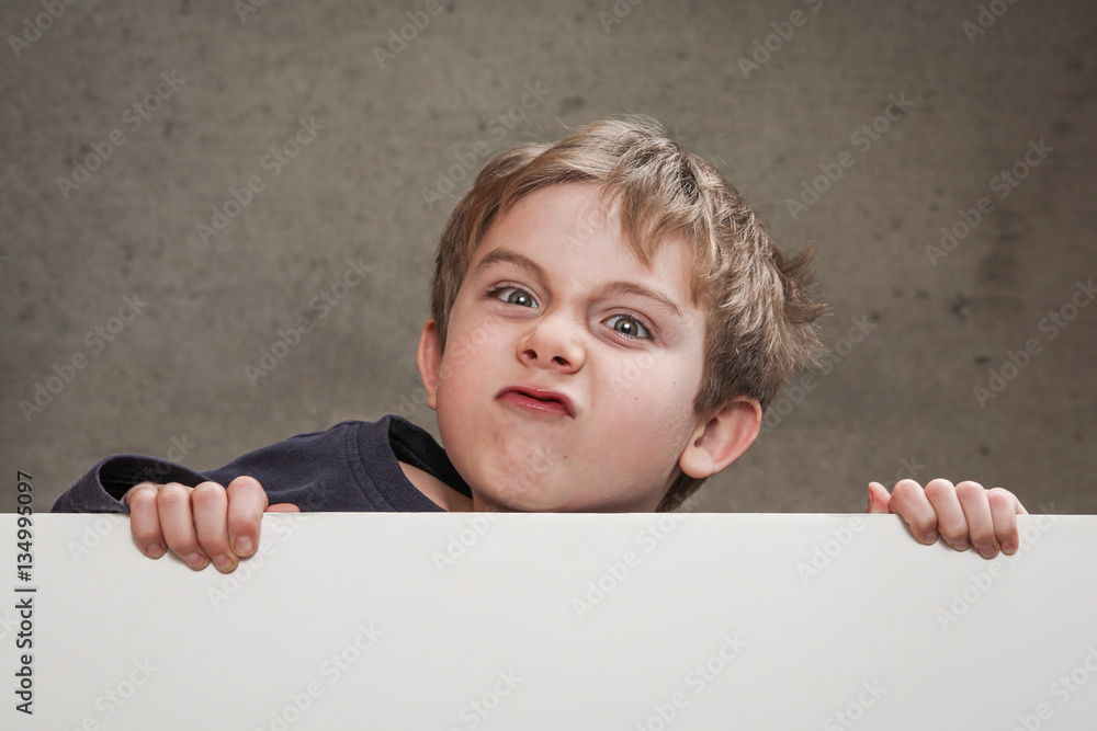 Angry Kid Holding A Blank Sign Stock Photo Adobe Stock